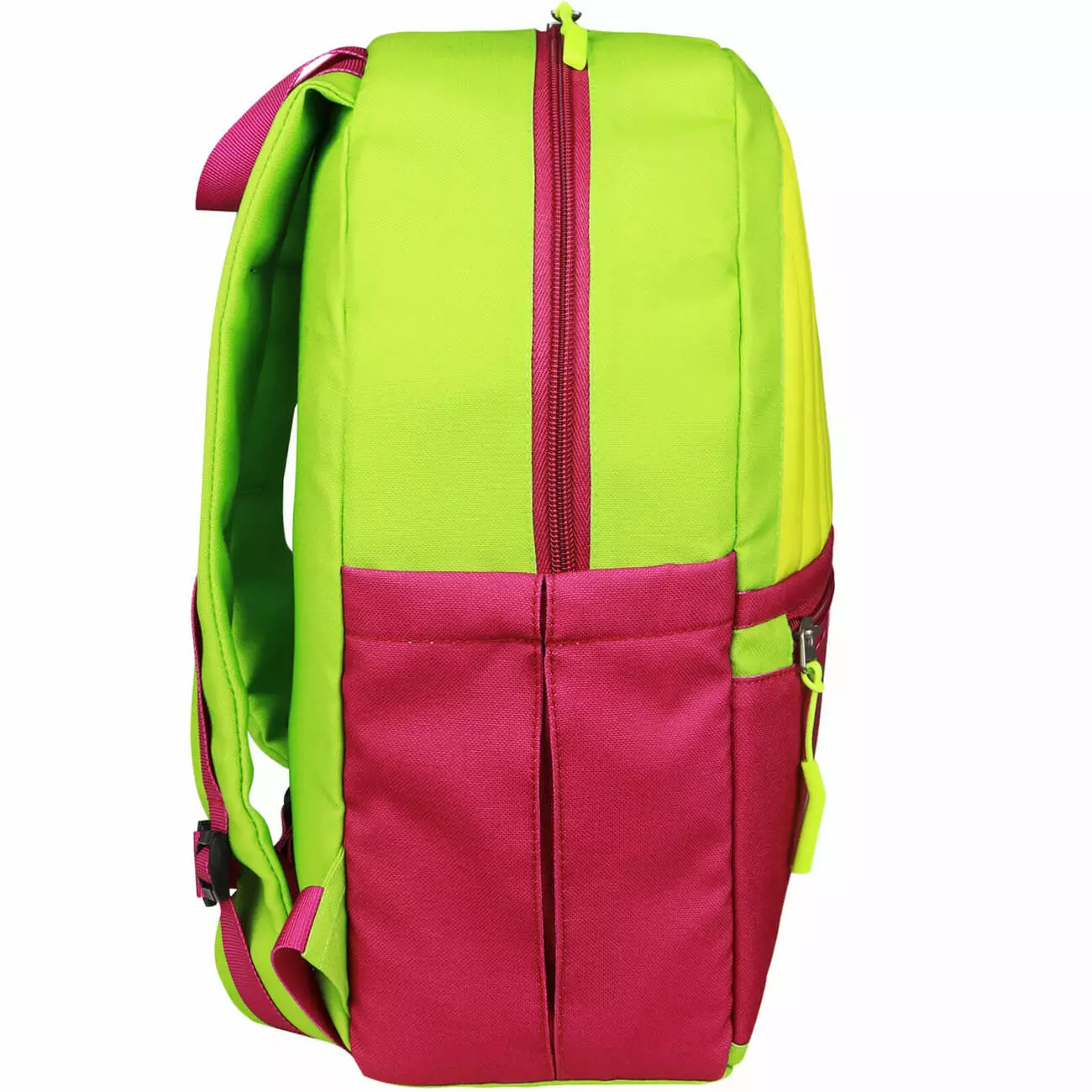 Основне відділення з барвистою підкладкою зберігатиме шкільне приладдя, речі для подорожей і смачні перекуси. Також усередині є кишеня-органайзер із двома відсіками для канцтоварів і кишеня на блискавці для цінних речей чи ґаджета. Ззовні з обох боків наявні відсіки для пляшки з водою чи термочашки, а спереду — невелика секція для дрібниць.