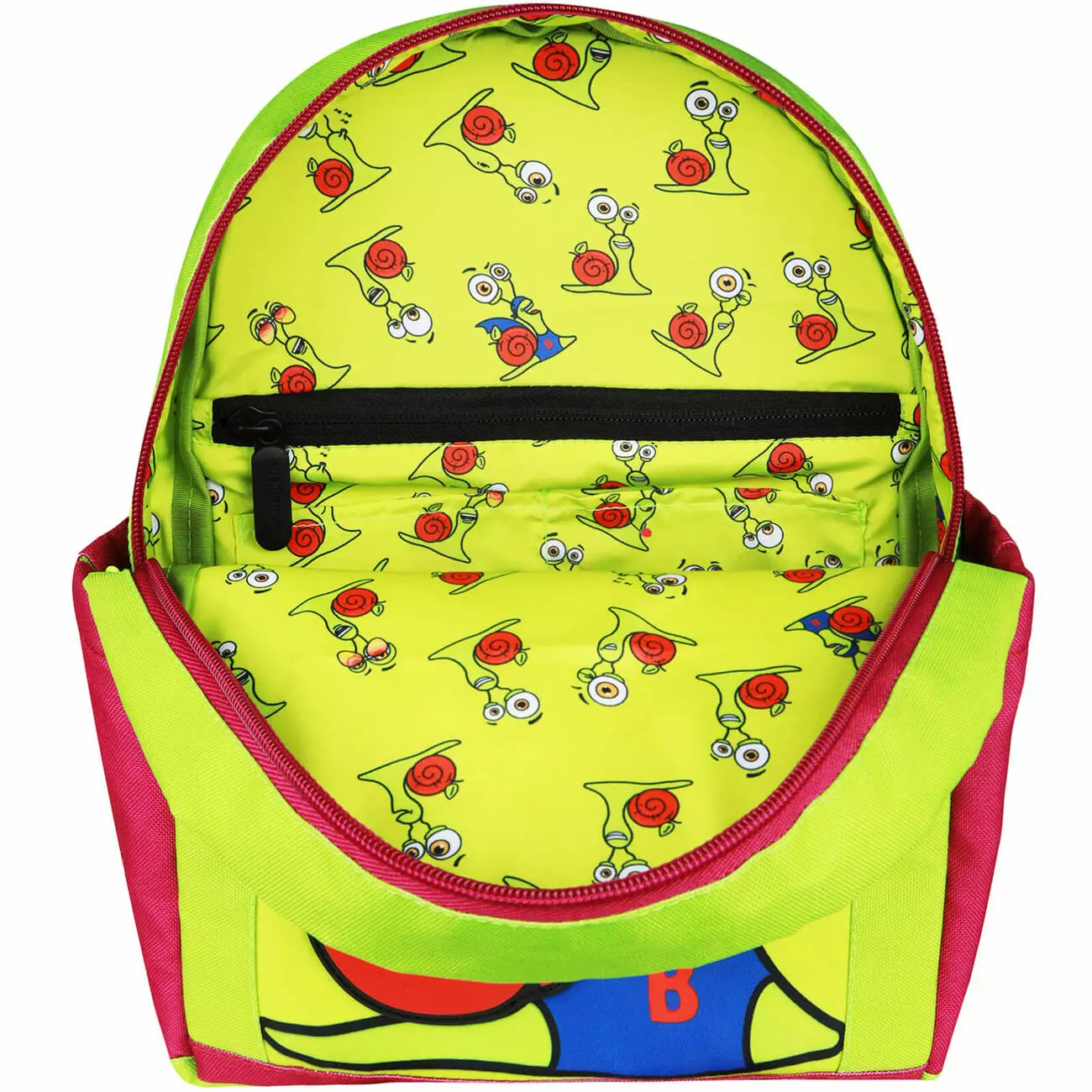 Рюкзак виготовлений із міцних матеріалів, щоб витримати всі щоденні активності. Просторе відділення з тематичною підкладкою та кишенями-органайзерами вмістить усе необхідне для веселих пригод: від іграшок до корисних смаколиків. А гумовий Равлик Боб на передній кишені додасть яскравого акценту, перетворюючи рюкзак на улюблений аксесуар!
